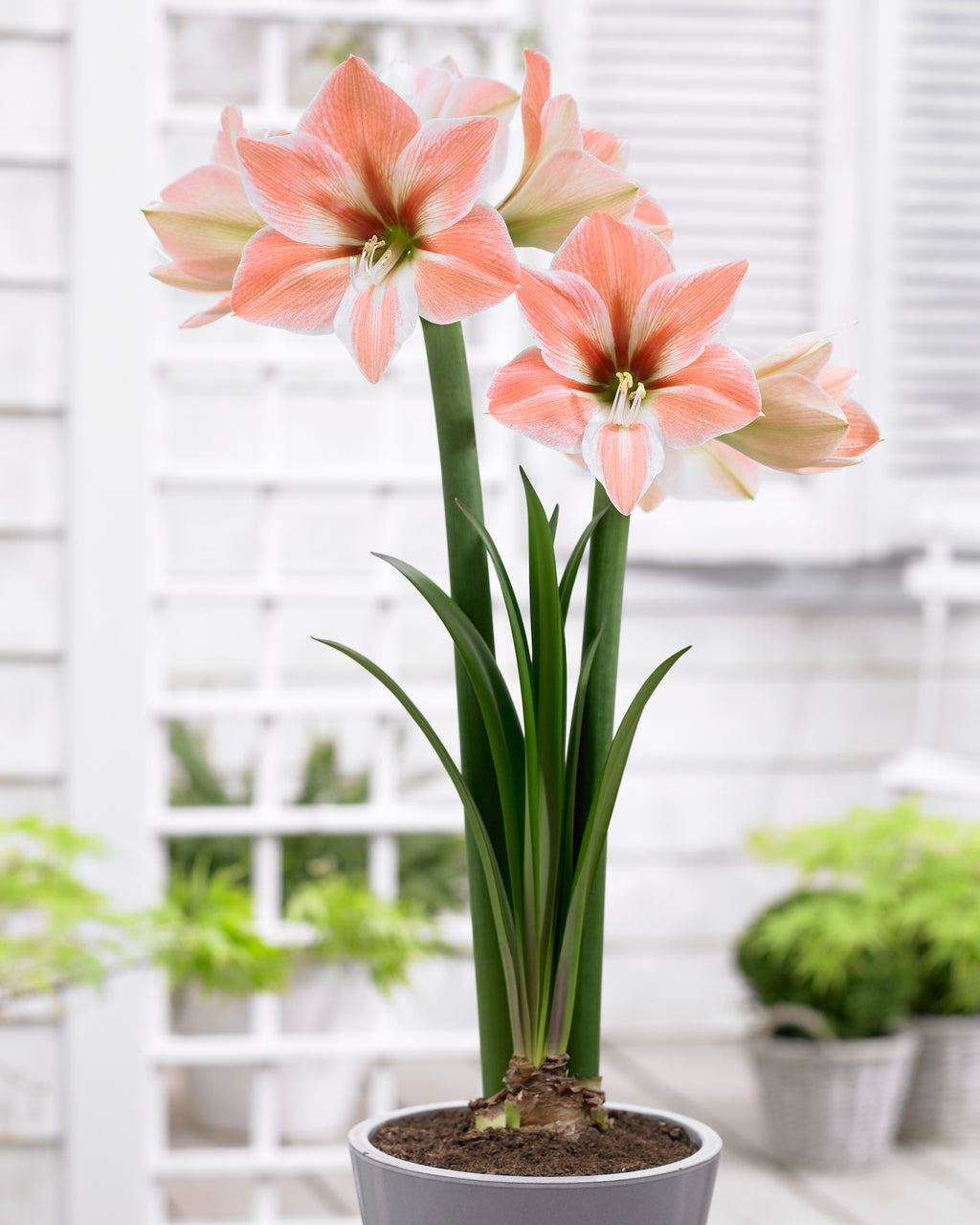 Apricot Parfait Amaryllis Hippeastrum Blooms Species Growing Bonsai Bulbs Roots Rhizomes Corms Tubers Potted Planting Reblooming Fragrant Garden Flower Seeds Plant Size 12-16cm