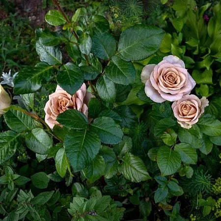 Many plants can be grown with roses to great effect. Climbing roses work well grown with clematis. Rambling roses can be trained to grow up a tree. Patio roses work well with a variety of other plants suitable for growing in pots, while shrub roses can be grown in a mixed ornamental border, alongside nepeta, lavender and other herbaceous perennials.