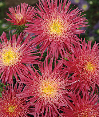 Fireworks in the garden. Large, bright, golden-disked blooms, in red to salmon, set off pyrotechnic bursts of joyous color. Loaded with vintage charm, the tall, long-stemmed flowers work marvels in a vase.