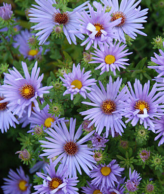 Hundreds of 1" daisy-like lavender blue flowers spring abundantly from the mounds of gray-green foliage. A perfectly gorgeous aster with aromatic leaves and visiting butterflies, the plants produce a splendid show in autumn. Easy to grow in full sun, with other native plants and deer resistant.