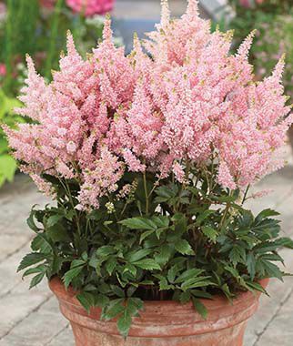The soft, feathery plumes of these astilbes are a welcome sight in spring and will brighten any shady space. Clumps form rapidly, with glossy, deep green, lacy foliage that makes an excellent ground cover. Best grown in drifts with heucheras, ferns, hellebores and other shade-lovers