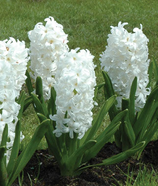 Hyacinth Carnegie is the best white hyacinth for spring color. It blooms in mid spring and lasts long even under heavy rain. The bright, pure white blossoms are ideal for creating colorful flower beds. It goes well with large pansies and mixed with tulips. We recommend Carnegie with Triumph tulips like Magic Lavender, Don Quichotte or Princess Margaret, but it could be combined with low growing tulips as well. The color combinations and designs are endless with this hyacinth. Bulb size: 17 cm.