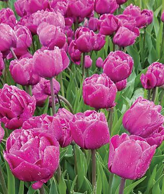 Magnificent and extraordinary, ¡®Backpacker¡¯ charms and hypnotize us with its large, double purple peony-like flowers. Selected for its durability in the vase this double-late variety will stay pretty for at least three weeks on your kitchen table. One of the best qualities for why we selected this specimen is because it is not dropping petals on the table; even when the blooms are completely spent the petals remain on the stems. Double-late group, bulb size 12 cm.