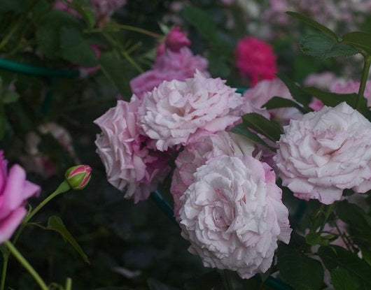 Many plants can be grown with roses to great effect. Climbing roses work well grown with clematis. Rambling roses can be trained to grow up a tree. Patio roses work well with a variety of other plants suitable for growing in pots, while shrub roses can be grown in a mixed ornamental border, alongside nepeta, lavender and other herbaceous perennials.